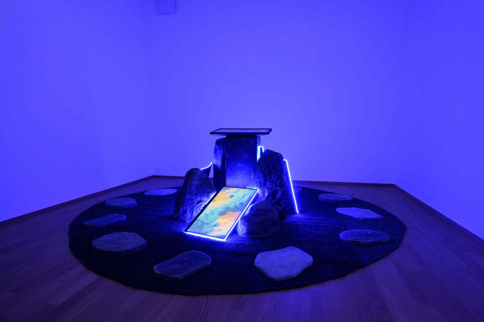 Subconscious.cache (Drift Archive) explore les environnements de données invisibles que nous habitons — ces courants que nous traversons sans les percevoir, tels des poissons inconscients de l’eau qui les entoure. Ces systèmes numériques de stockage et de dégradation conservent des fragments d’information qui se déposent et réapparaissent comme des sédiments. L’installation imagine la donnée comme une matière géologique : stratifi ée, érodée et perpétuellement à la dérive. Les visiteurs sont doucement guidés à travers une mer de fragments fl ottants et de calme artifi ciel — un rituel de l’obsolescence, célébré dans l’après-lueur d’un stockage infi ni, là où tous les sentiments ont été téléchargés et où tout ce qui comptait a déjà été perdu.